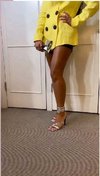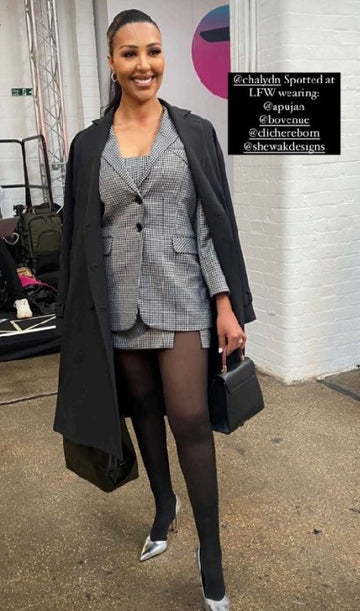 Chaly DN for London Fashion Week Wearing Silver Mirror Zaha pump